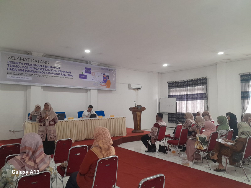 Tim dosen Politeknik ATI Padang sukses melaksanakan kegiatan Pengabdian Kepada Masyarakat (PKM) bertajuk Pelatihan Penerapan Teknologi Pengawetan dan Pengemasan untuk Peningkatan Daya Simpan Produk IKM Pangan Kota Padang Panjang, Jum’at (24/10/2025).